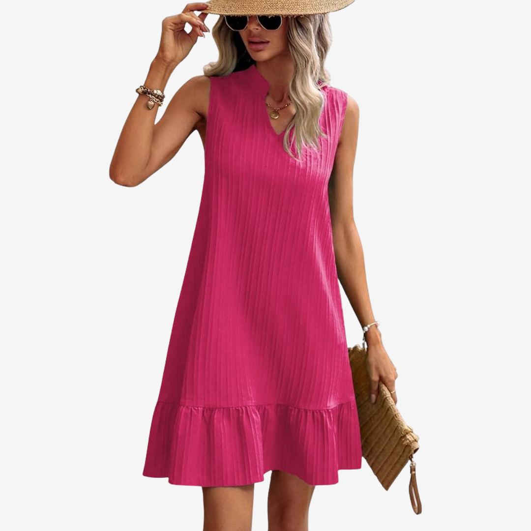 Découvrez Nadina™, l'alliance parfaite de l'élégance estivale discrète et du confort naturel. Cette robe droite sans manches est confectionnée dans un tissu doux à la texture lin qui respire à chaque pas. Avec sa coupe trapèze décontractée et son ourlet légèrement volanté, elle est conçue pour flatter toutes les silhouettes tout en vous apportant légèreté et légèreté.