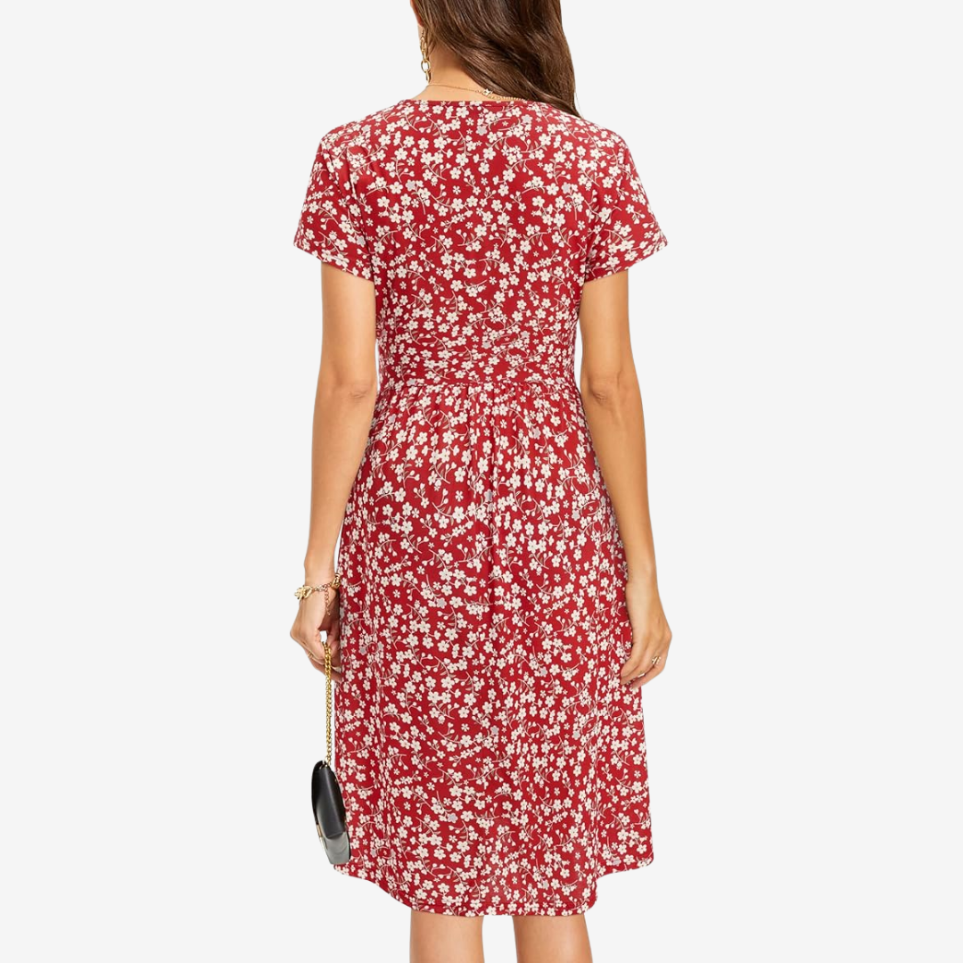 L'Alixane™ apporte une touche de charme naturel à votre garde-robe estivale. Avec son imprimé floral féminin, son décolleté en V fluide, ses manches courtes et ses poches latérales pratiques, cette robe légère offre l'équilibre parfait entre confort et style, pour vos sorties quotidiennes comme pour vos week-ends décontractés.
