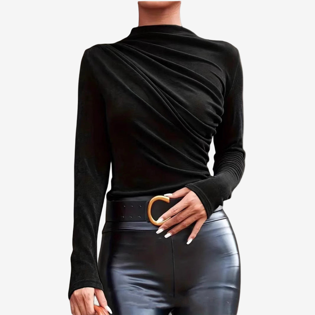 Carole™ est une pièce phare alliant élégance et modernité. Doté d'un drapé plissé unique sur le devant, ce haut à manches longues flatte la silhouette tout en ajoutant une touche de sophistication à toutes vos tenues. Son tissu doux et extensible assure un confort optimal, tandis que sa coupe ajustée lui confère une allure chic et raffinée. Parfait pour les sorties décontractées comme pour les soirées, Carole™ se porte aussi bien le jour que le soir.