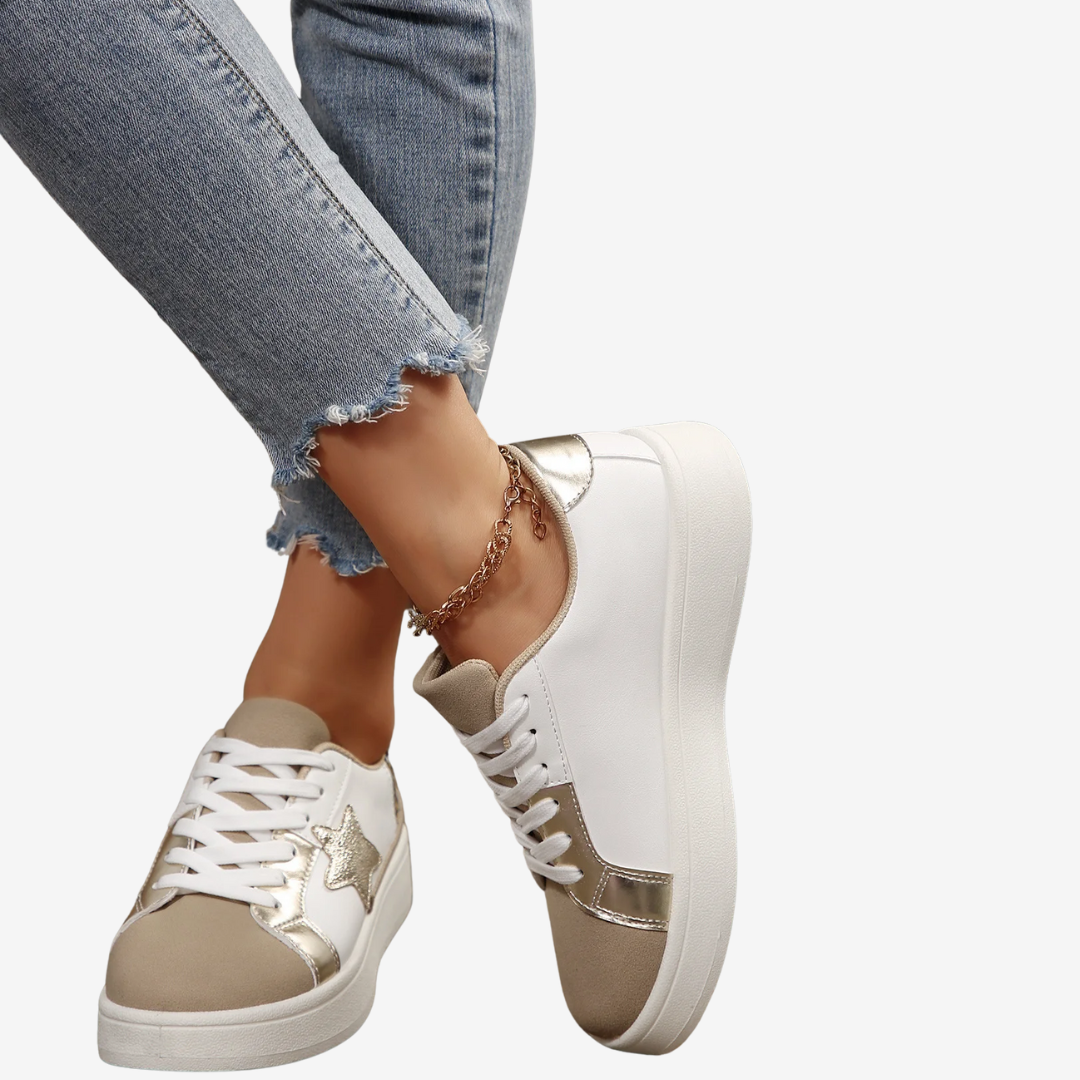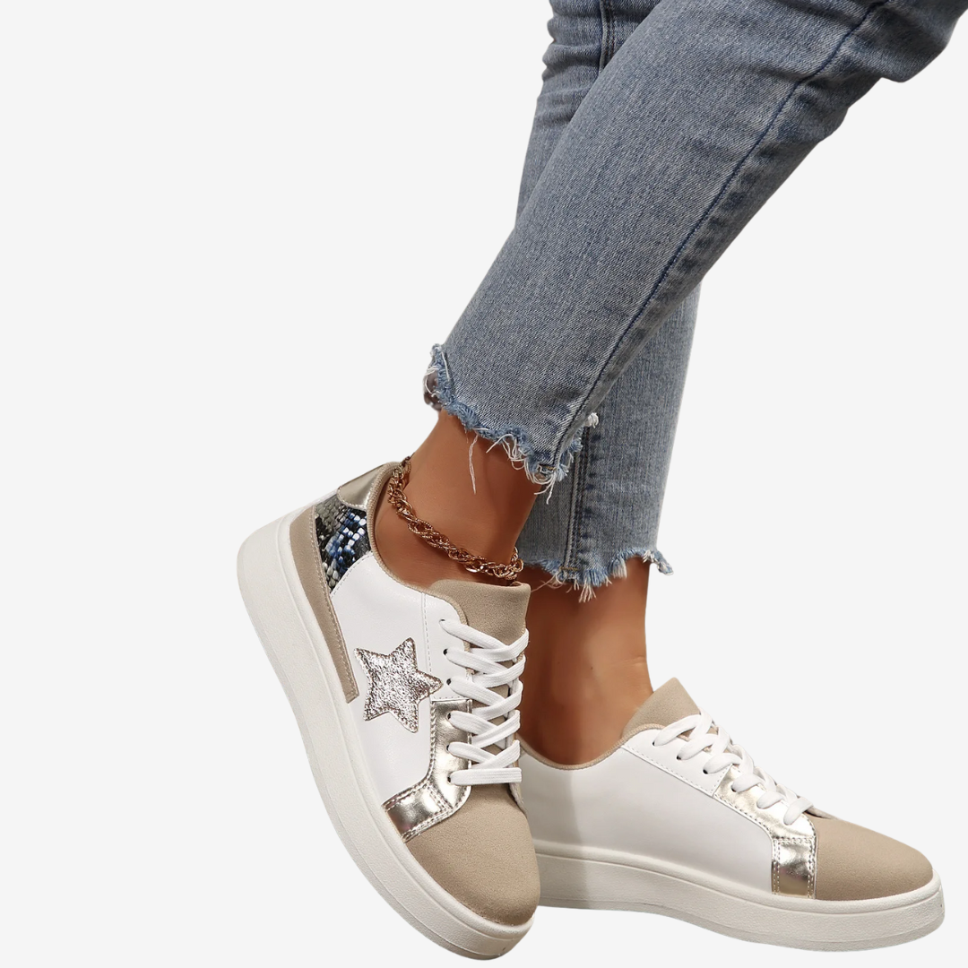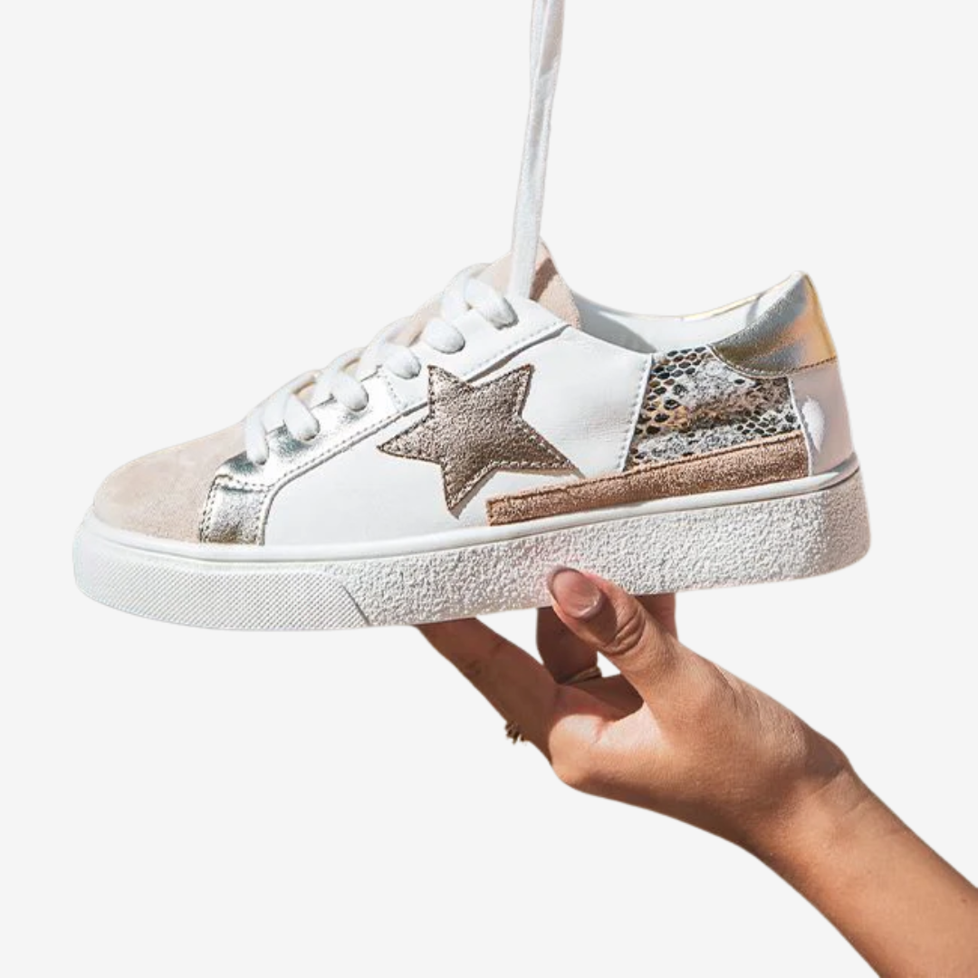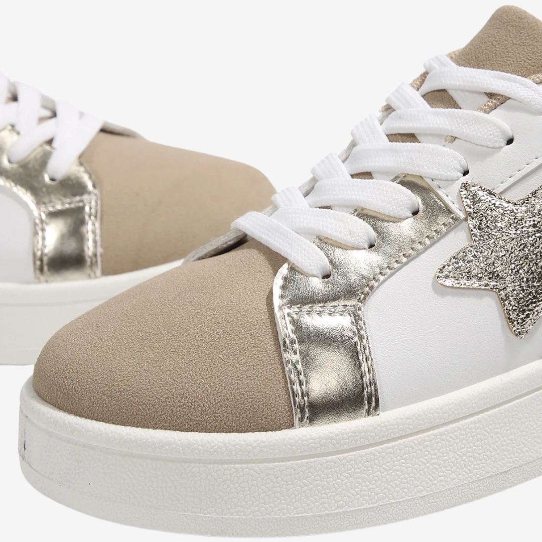 Les baskets Nadège™ allient design audacieux et confort au quotidien. Ornées d'un motif python doré saisissant rehaussé d'une étoile bronze, ces baskets à lacets ajoutent une touche glamour à toutes vos tenues. L'harmonie des textures et des couleurs leur confère un design raffiné et accrocheur.