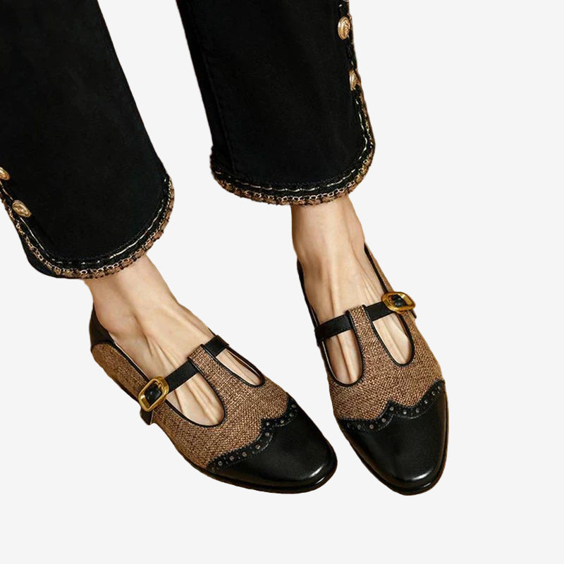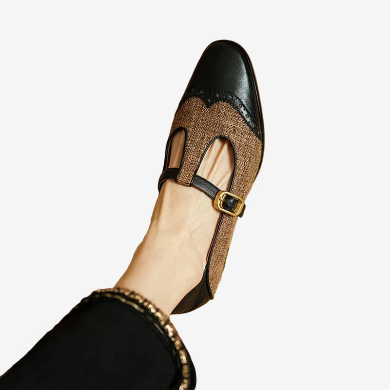 Entrez dans un monde d'élégance avec les chaussures Genira™, fusion parfaite entre design classique et modernité. Ces superbes chaussures plates arborent un charmant design bicolore, une élégante bride à boucle et un talon discret pour un confort optimal. Leur finition soignée et leur silhouette intemporelle en font une pièce incontournable de toute garde-robe, ajoutant une touche de sophistication à vos tenues professionnelles comme décontractées. Les chaussures Genira™ allient à la perfection style vintage et confort au quotidien.