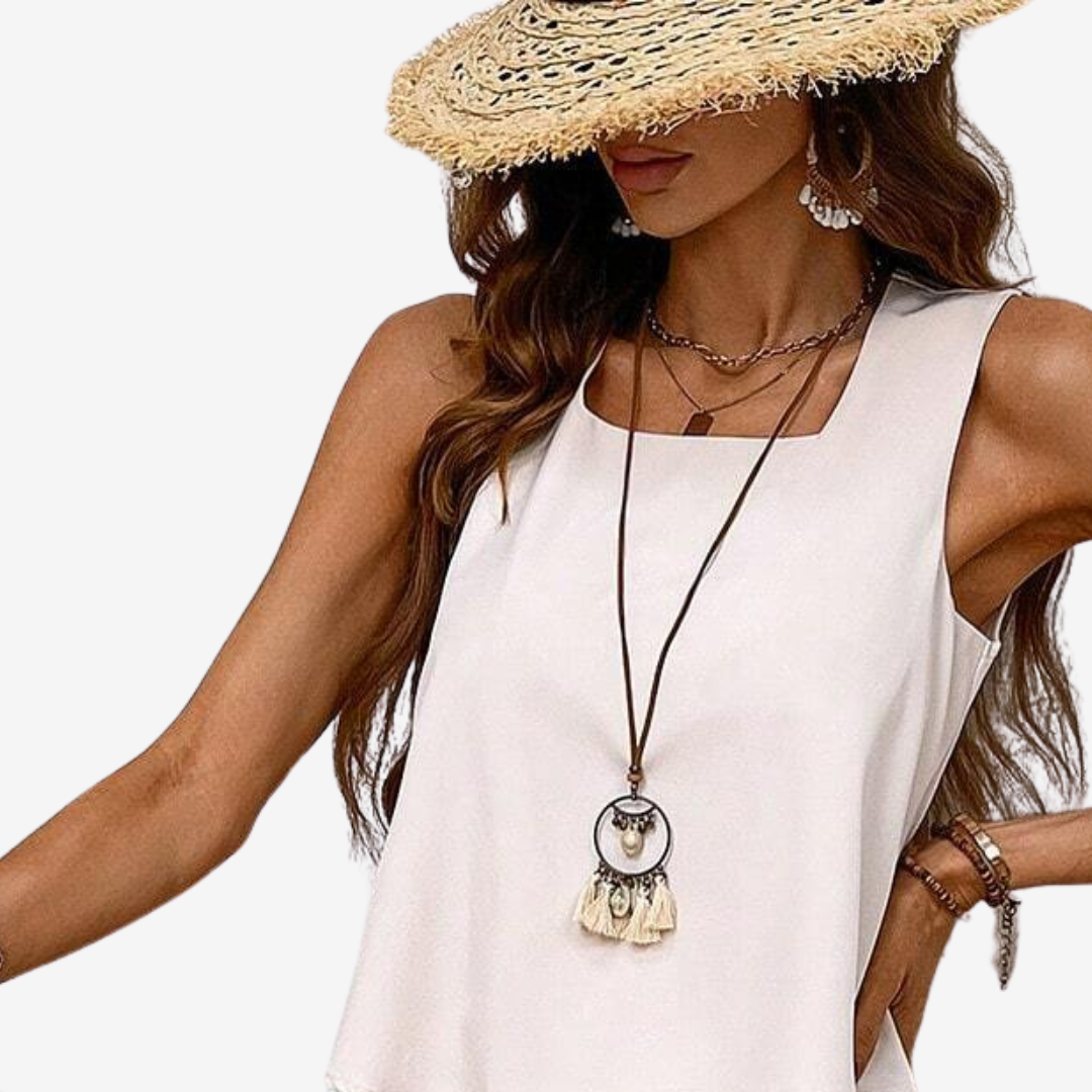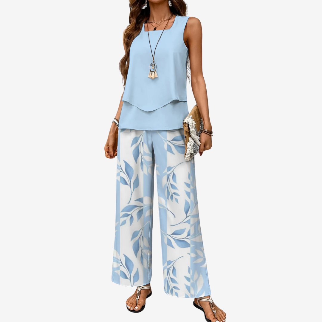 Conçu pour la femme moderne, cet ensemble se compose d'un haut sans manches et d'un pantalon assorti, confectionnés dans une matière haut de gamme, pour une tenue légère et aérienne. Parfait pour les chaudes journées d'été, il allie confort et sophistication, idéal pour de nombreuses occasions.