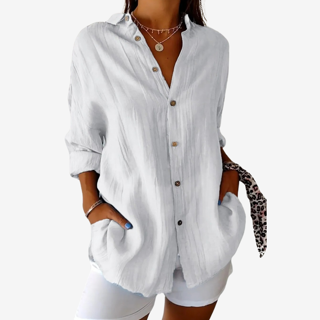 La chemise Josiane™ allie raffinement et confort. Confectionnée dans un tissu léger et respirant, elle arbore de délicats plis sur le devant et des poignets subtilement évasés. Avec sa coupe ajustée et décontractée, elle est parfaite pour le bureau ou les soirées chics et décontractées, avec une élégance et un raffinement naturels.